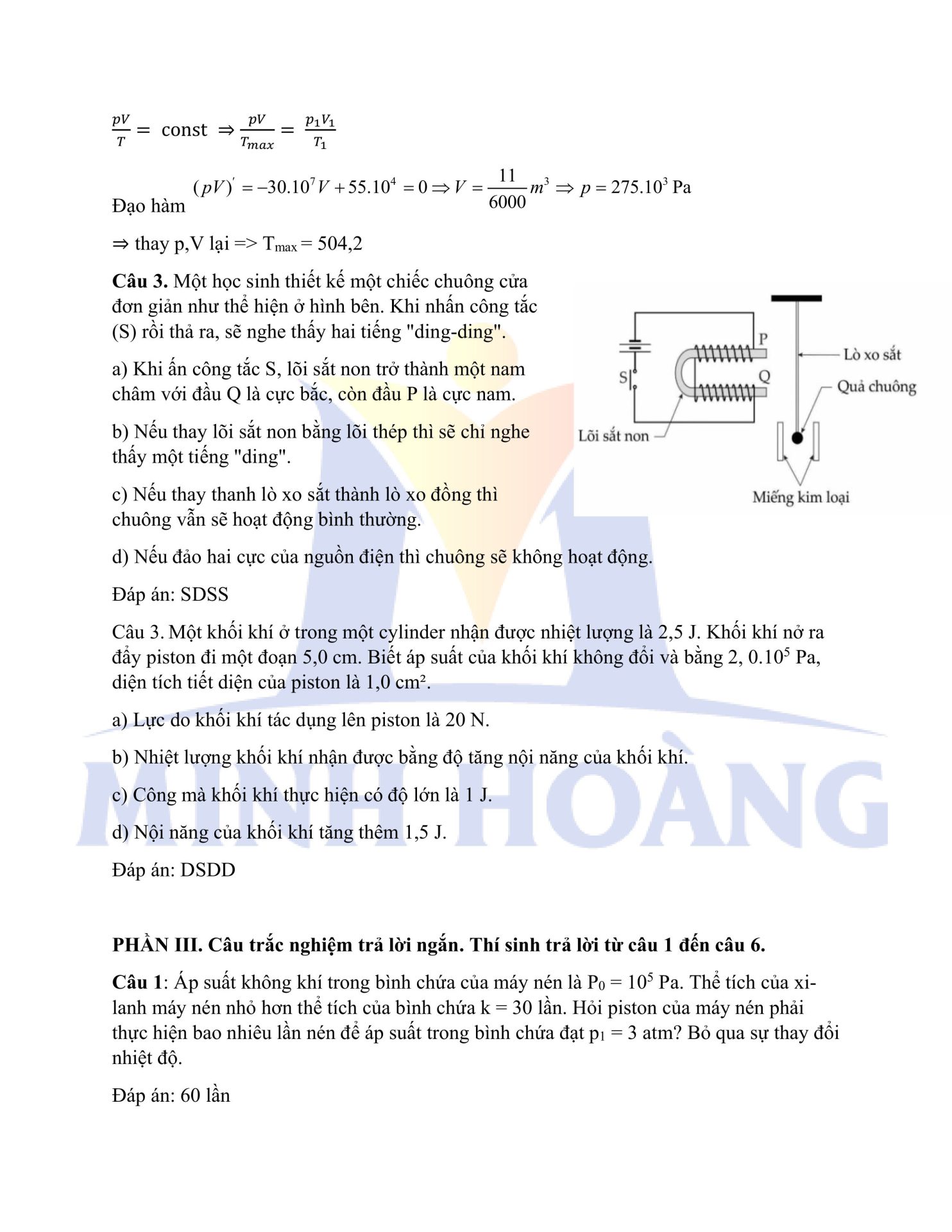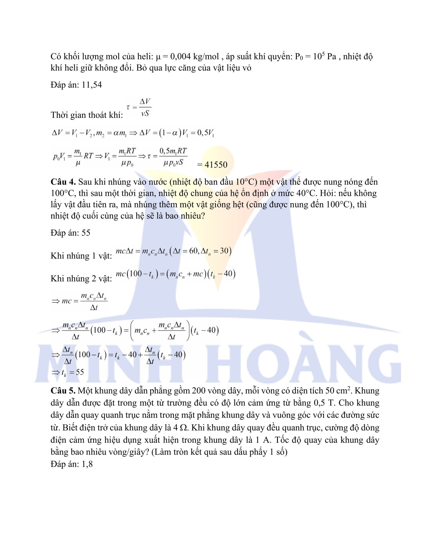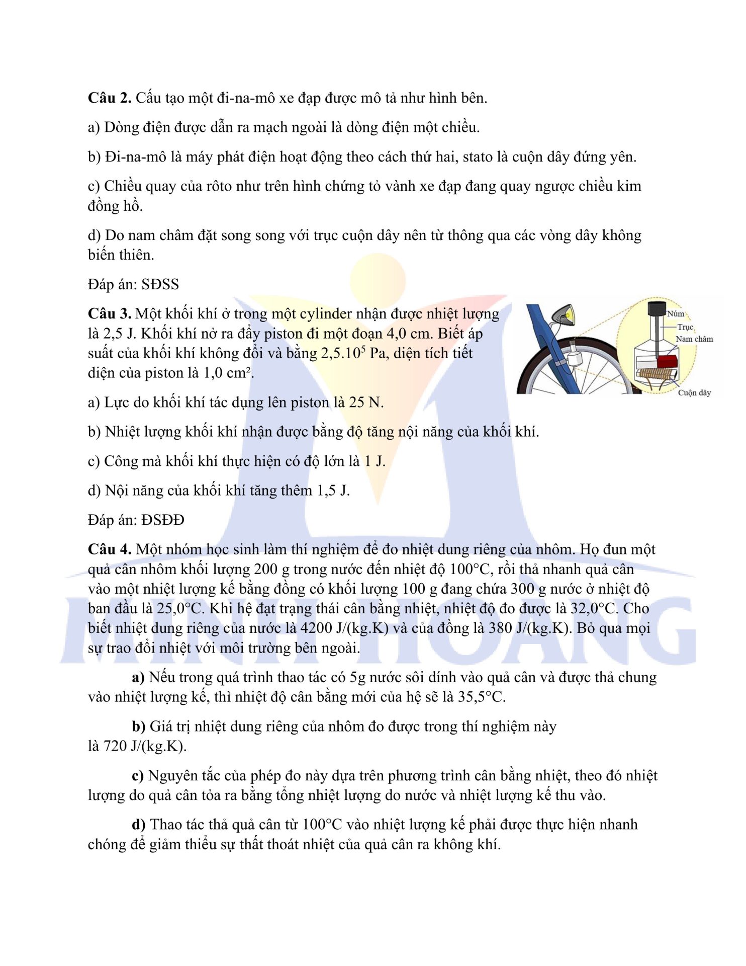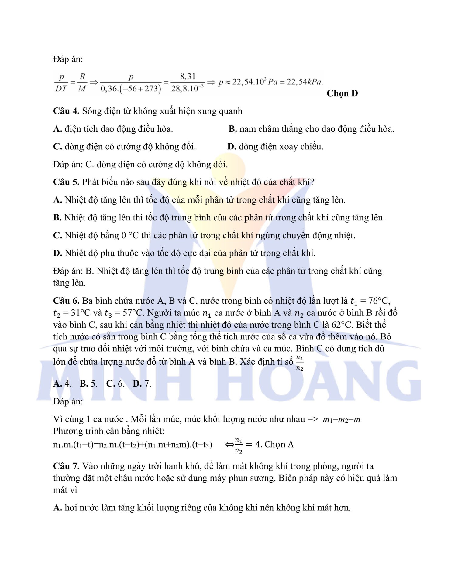 Đáp án chính thức môn Vật Lý – Kỳ thi thử Tốt nghiệp THPT tại Trung tâm Minh Hoàng