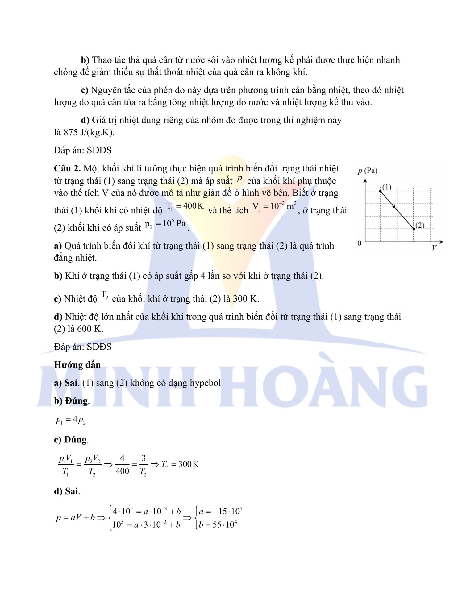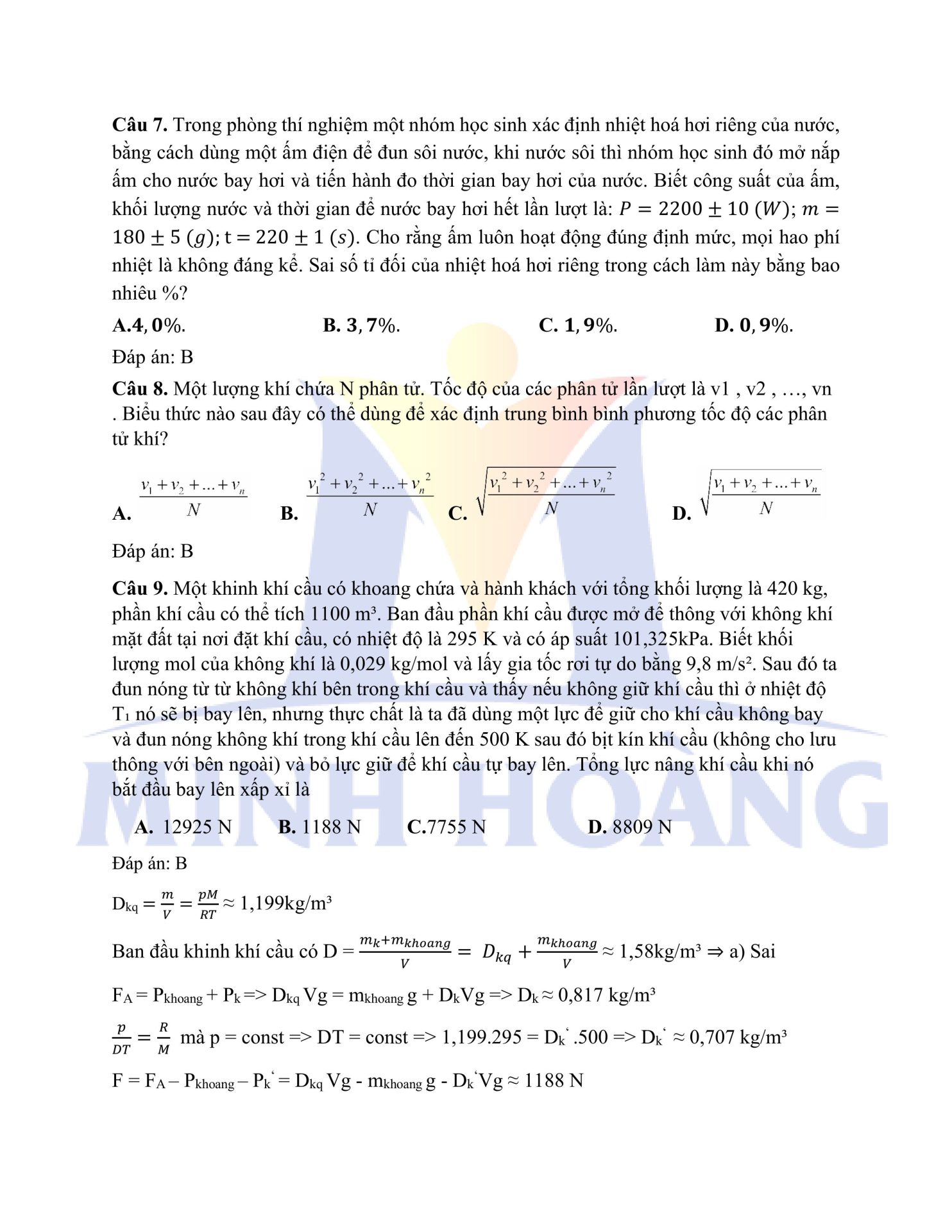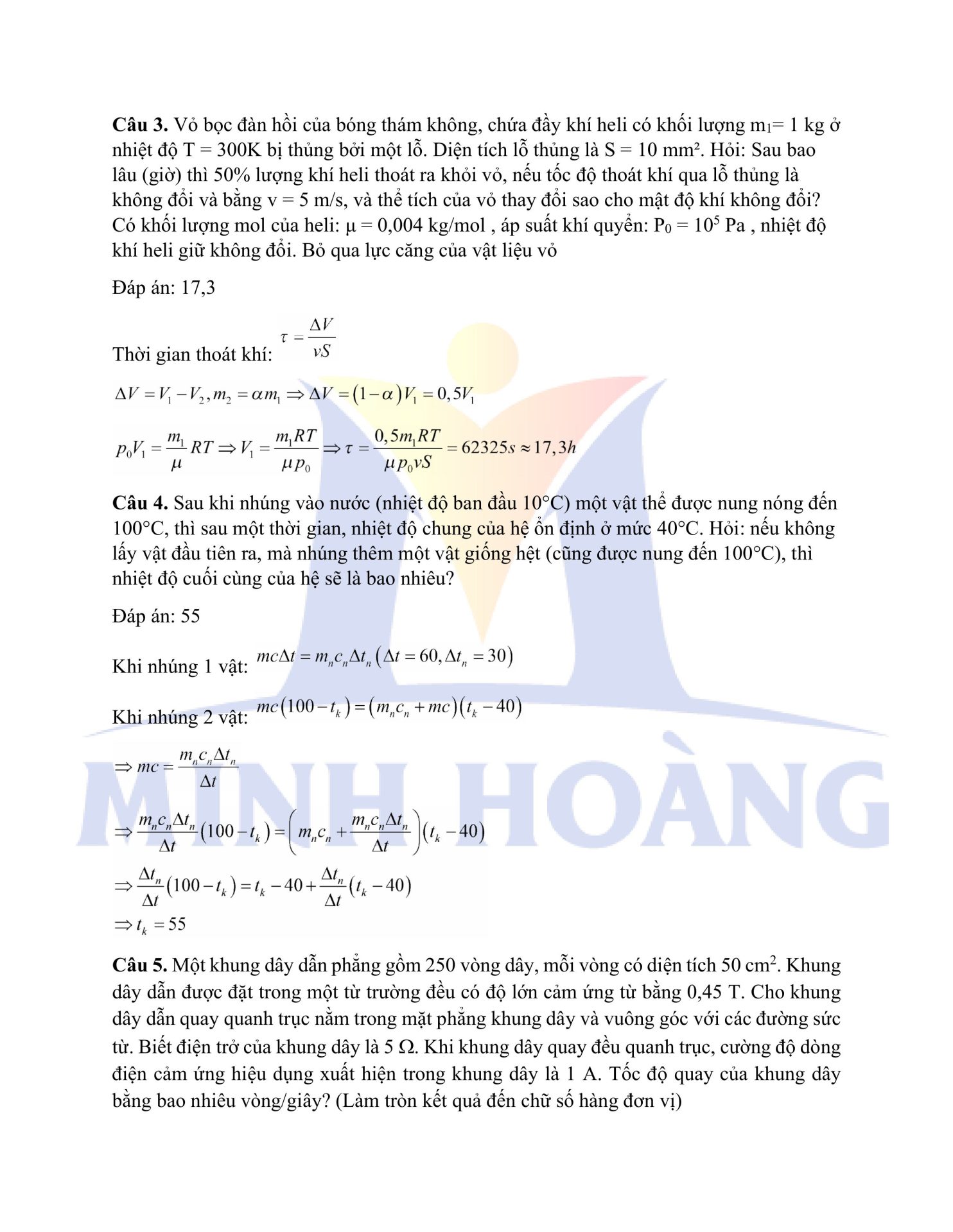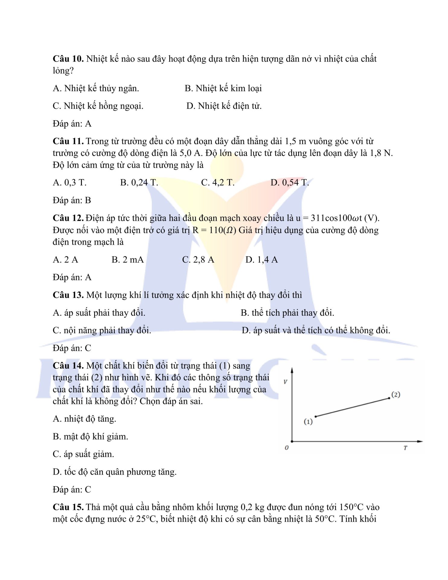 Đáp án chính thức môn Vật Lý – Kỳ thi thử Tốt nghiệp THPT tại Trung tâm Minh Hoàng
