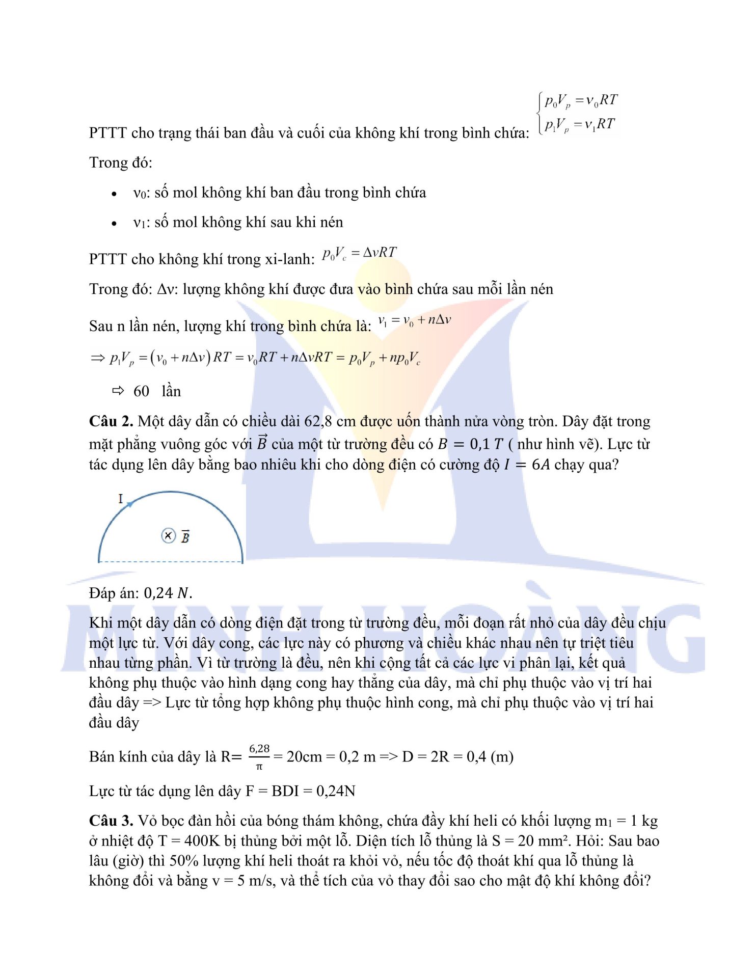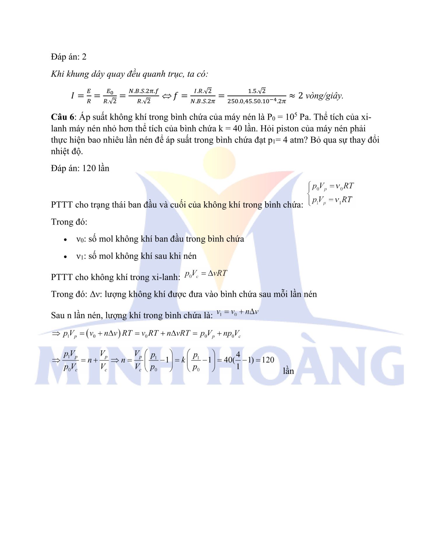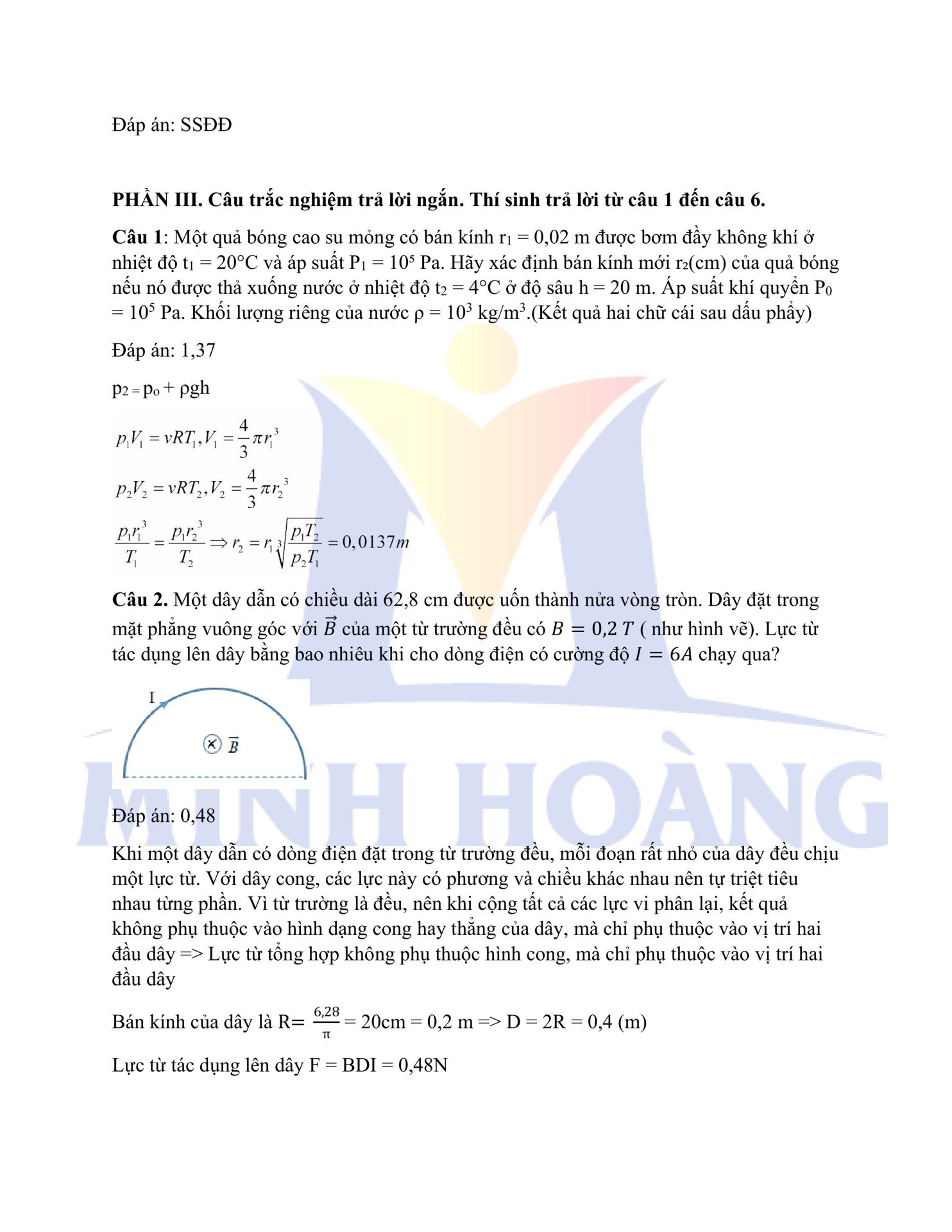 Trung tâm Minh Hoàng xin gửi tới các em học sinh đáp án đầy đủ của cả hai mã đề môn Vật lý trong kỳ thi thử Tốt nghiệp THPT vừa qua.